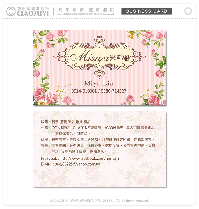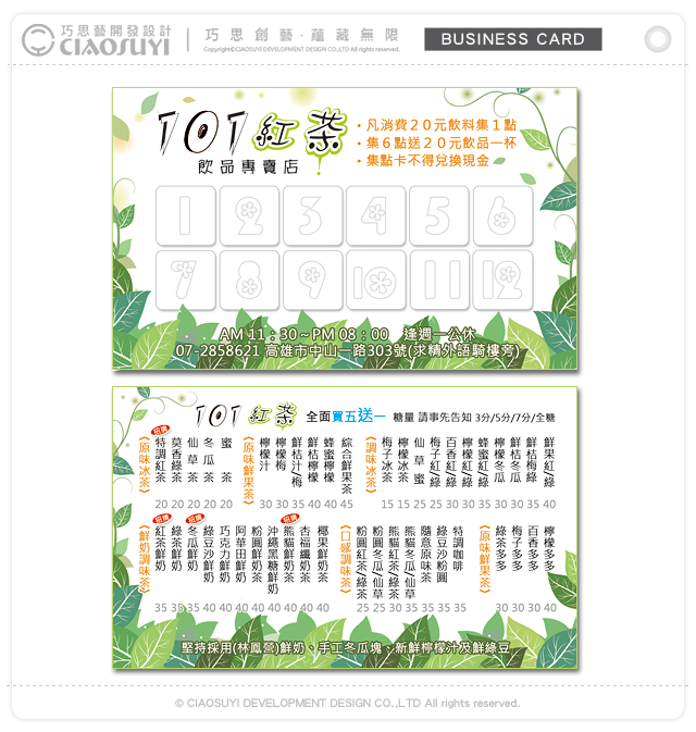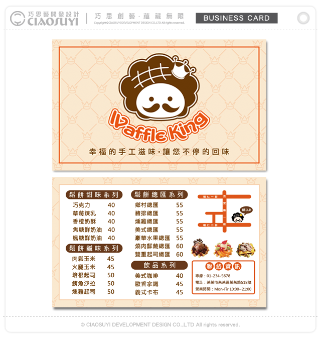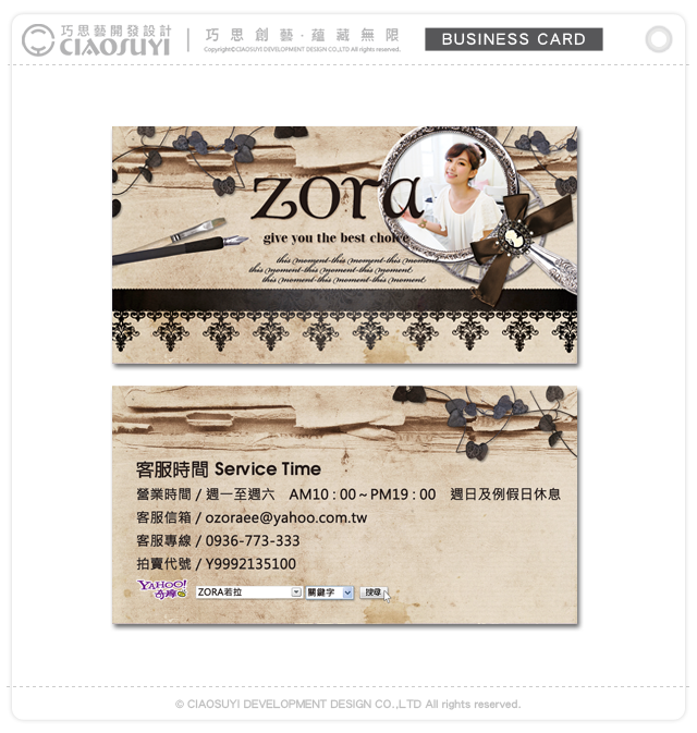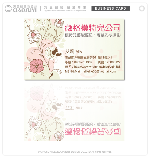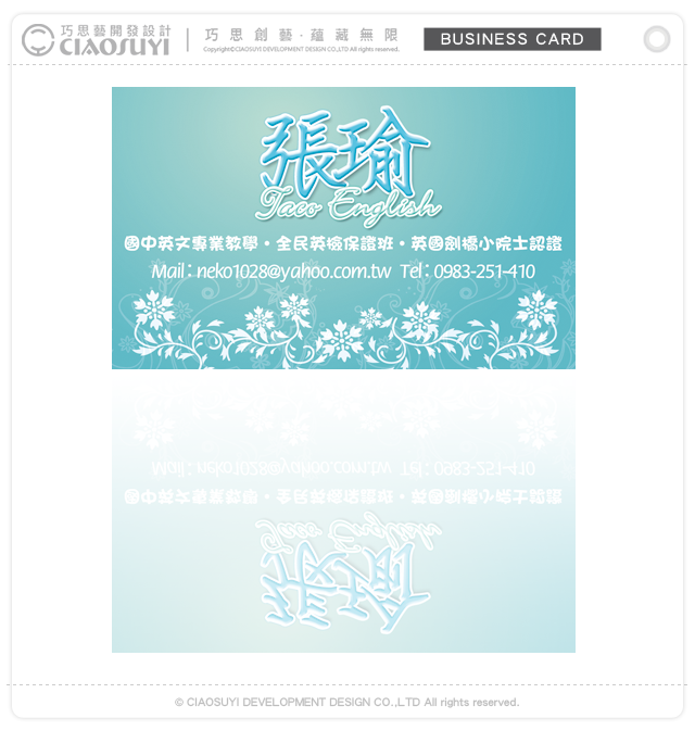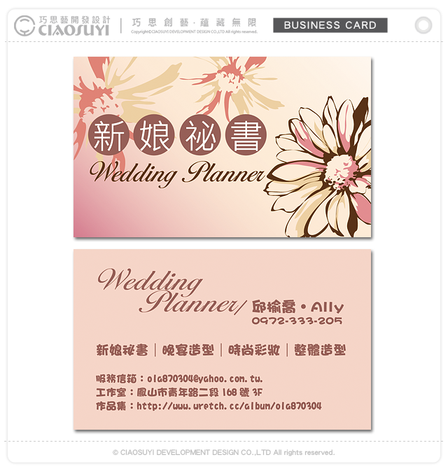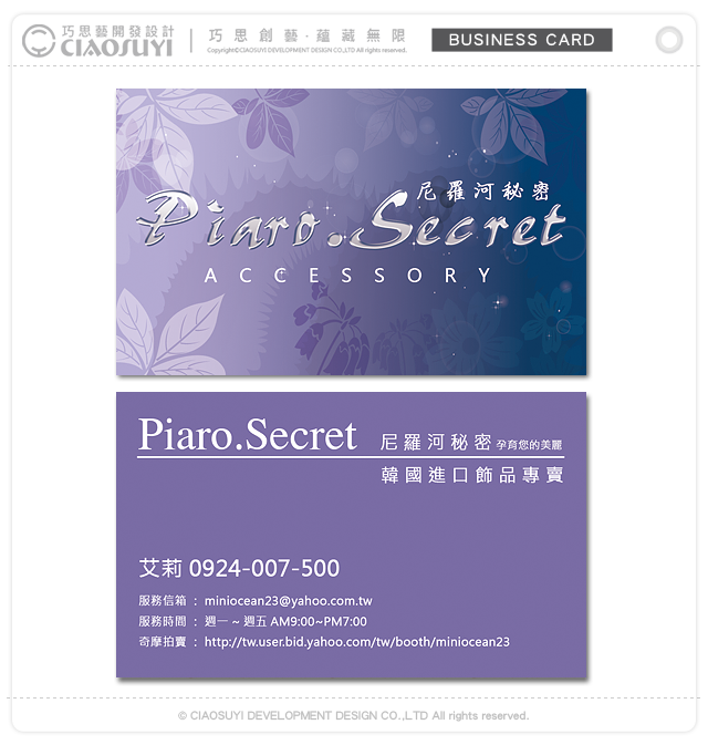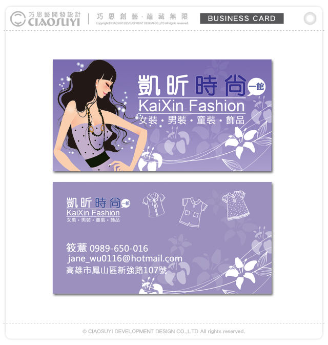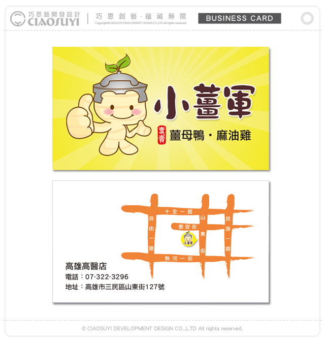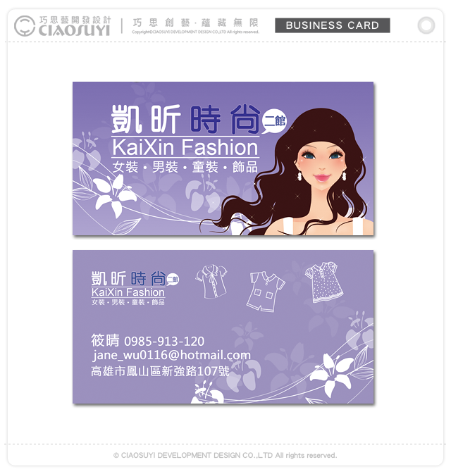 ( 802 ) 高雄市苓雅區自強三路80巷14號 電話:(07)336-3799 傳真:(07)336-3566 統一編號:53234055 巧思藝開發設計 版權所有 © CIAOSUYI DEVELOPMENT DESIGN CO.,LTD All rights reserved. 本網站圖片之版權為本公司及客戶所有;請勿抄襲或拷貝 |